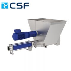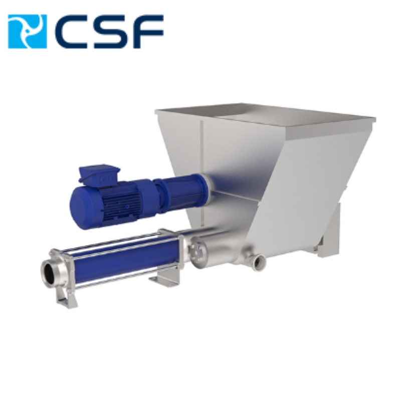 The two pre-feeding screws then push the product to the pump stator.