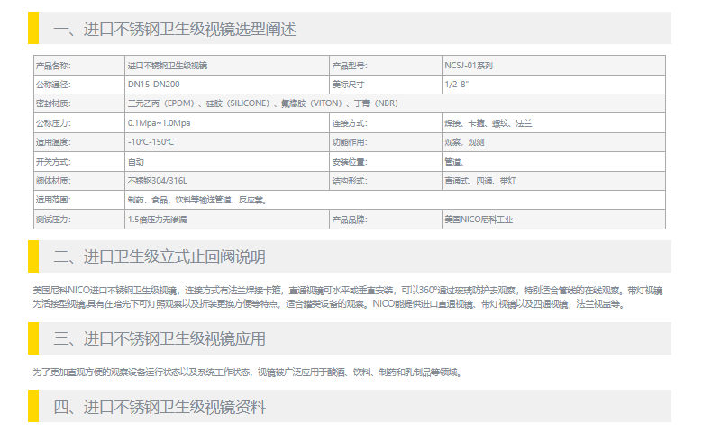 进口不锈钢卫生级视镜-直通卡箍焊接